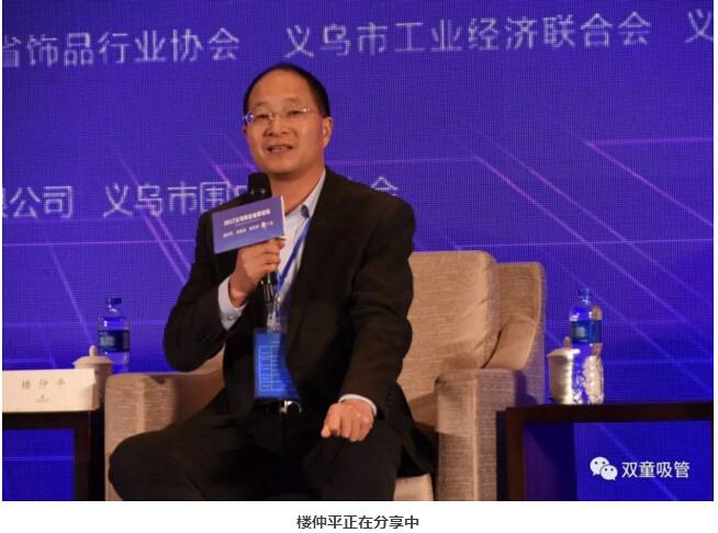 在最受矚目的企業(yè)家分享環(huán)節,“雙童”樓仲平與義烏新光控股集團董事長(cháng)周曉光、義烏浪莎襪業(yè)有限公司董事長(cháng)翁榮金、義烏華鴻控股集團有限公司董事長(cháng)龔品忠、義烏小微企業(yè)代表黃洪鳴這幾位義烏企業(yè)界大咖被邀上臺,共同分享了他們的2017年收獲以及2018年的展望!