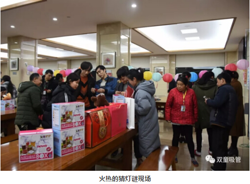 前來(lái)猜謎的員工們三五成群,時(shí)而交流談?wù)?,時(shí)而冥思苦想,猜中者喜得獎品,興趣倍增;猜錯者不氣不餒,再接再厲。