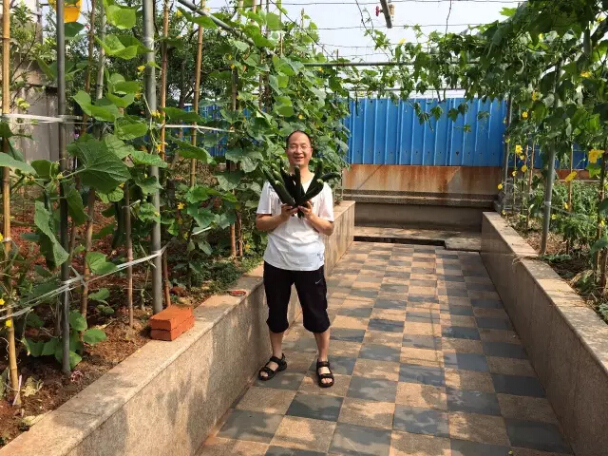 “雙童”的屋頂菜園有700多平方米,種著(zhù)二三十種蔬菜!南瓜、絲瓜、苦瓜、冬瓜、辣椒…… 菜園子里的蔬菜真是應有盡有,自家種的菜,在眼皮子底下發(fā)芽成長(cháng),開(kāi)花結果,安全放心!