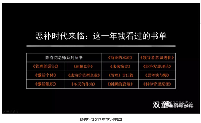 除了基層員工的學(xué)習之外,“雙童”也十分注重管理層的學(xué)習提升!這兩年,公司統一購買(mǎi)了各類(lèi)管理書(shū)籍,“雙童”樓仲平和管理層們一起學(xué)習管理理念。