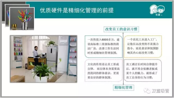另一方面,“雙童”給員工用五星級的硬件,也是引導員工改變自身的思維和行為方式,讓員工關(guān)注細節!質(zhì)量是用“心”做出來(lái)的,通過(guò)這樣的氛圍影響員工的內心,員工的素質(zhì)和質(zhì)量意識才能進(jìn)一步提升,有高品質(zhì)的硬件為基礎,員工才能生產(chǎn)出高品質(zhì)的產(chǎn)品!看到這里,大家應該明白為什么“雙童”的員工餐桌要這么貴了吧!
