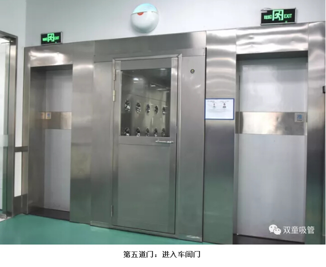 5.員工們風(fēng)淋后經(jīng)過(guò)第五道車(chē)間入口門(mén),進(jìn)入車(chē)間進(jìn)行生產(chǎn)工作。