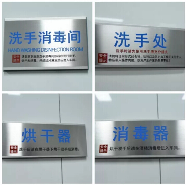 除此之外,功能區內還配置了高端的烘干器、消毒器、感應水龍頭以及酒精消毒器等硬件,并配置了許多精心定制的標示牌,提示著(zhù)員工規范使用!這樣的配備也為員工的衛生要求做了硬件的保障,確保員工工作環(huán)境的極致衛生!