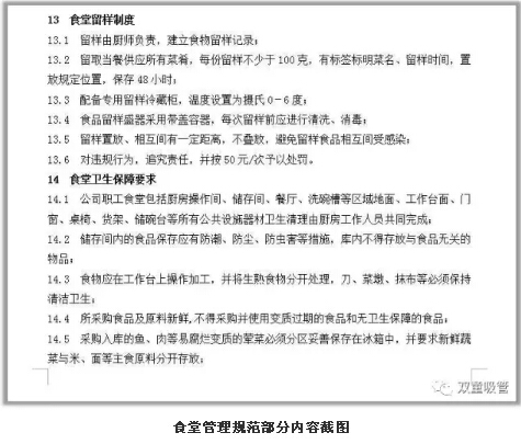 對此,公司組織人員編寫(xiě)了餐飲管理細則,涉及到餐飲管理的各個(gè)方面,從餐飲管理成本、廚師上崗要求、廚房崗位工作權責、餐費管理原則、食堂衛生保障、員工滿(mǎn)意度調查等方面進(jìn)行一一細化,每項內容都有具體的實(shí)施條例!