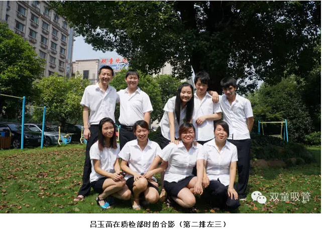 呂玉苗,是一位地道的安徽姑娘。她曾是“雙童”的一員,從18歲就到“雙童”工作,不僅提升了自己的工作能力,還在這里找到了自己的另一半,把家安在了“雙童”。2011年,年滿(mǎn)18歲的呂玉苗經(jīng)老鄉介紹來(lái)到“雙童”,從一線(xiàn)普工做起,從事了質(zhì)檢員、車(chē)間班長(cháng)等崗位。