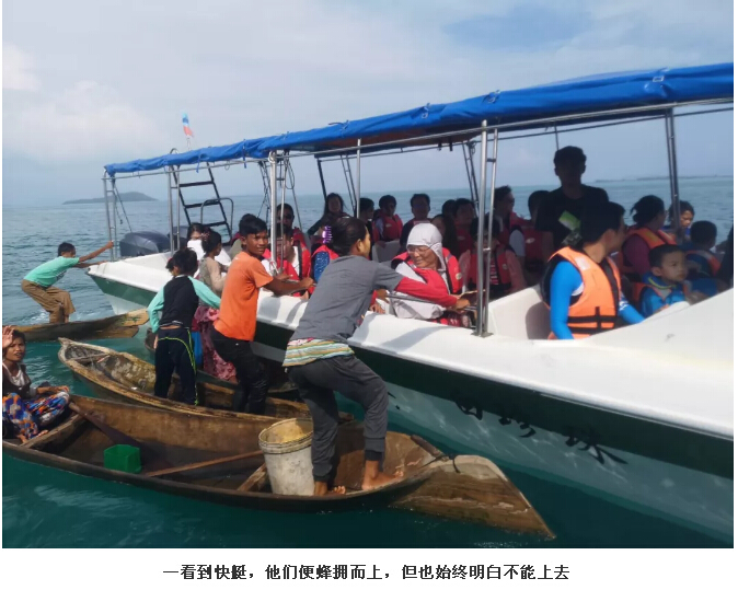 很快,我們到了第一個(gè)島——波德加亞島。負責介紹的“小黑”告訴我們,我們不需要上第一個(gè)島,主要是帶我們來(lái)看看世界上唯一一個(gè)沒(méi)有國籍的民族——巴瑤族。