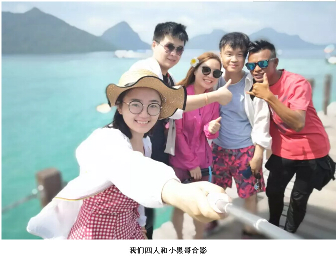 第二個(gè)島是珍珠島,原本是要爬一座小山,可以看到很美的風(fēng)景。但是到達后,小黑哥了解了情況后告知:昨天下了大雨,山上太滑,不能爬山。聽(tīng)說(shuō)了這個(gè)“壞消息”,我這個(gè)向來(lái)不愛(ài)爬山的人放下了心里的大包袱,哈哈!小黑哥說(shuō),我們可以在島上停留20分鐘,給我們拍照留念。于是,所有人都默默拿出手機開(kāi)始拍照片……