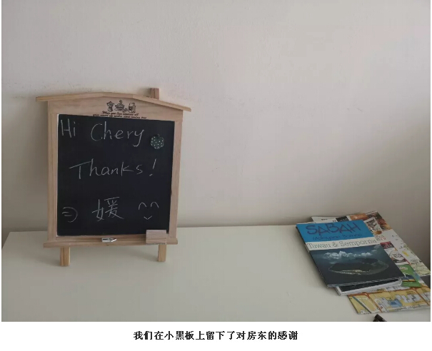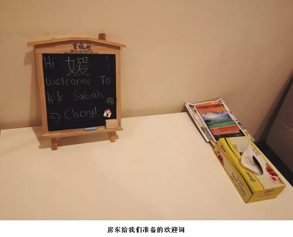 搭乘晚上的飛機回到亞庇,我們提前一天在愛(ài)彼迎上訂好了套房。下面必須安利一波我們在亞庇住的套房!這個(gè)Lazy.Elephant套房,它位于哥打京那巴魯市,是中央商務(wù)區天空套房。它不僅有兩扇大大落地窗可以觀(guān)賞城市景觀(guān)和絕美日落,還能共享sky hotel的INFINITY游泳池,健身房和天空休息室!有這樣的套房,可以提供六人居住,一晚只要500左右人民幣,太適合家庭或者組團居住了!房東Chery人超好,因為我們到亞庇已經(jīng)十一點(diǎn)多了,她怕我們找不到地方,把每一個(gè)需要拐彎和注意的地方都用照片拍下來(lái)標注好箭頭,提醒我們應該怎么走。到達房間后,能夠看到她在客廳小黑板上寫(xiě)了歡迎詞,貼心的寫(xiě)了姐姐的中文字“媛”,讓人一進(jìn)門(mén)就感覺(jué)特別溫暖。
