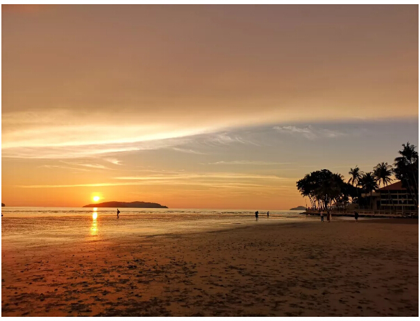 下午,就迎來(lái)了我們非常期待的丹絨亞路日落啦!我們駕駛著(zhù)新租來(lái)的小車(chē)子(這輛車(chē)是我們去仙本那之前在機場(chǎng)租好的,價(jià)格比“小紅”略便宜一些,而且比“小紅”更高檔,空間更大,還是我喜歡的白色?。?,一路行駛到沙灘邊。當天天氣非常好,所以去看日落的人應該也很多,路上堵了長(cháng)長(cháng)的車(chē)隊,幸好我們出發(fā)得早,到達的剛剛好??吹骄W(wǎng)上推薦看落日的地點(diǎn)已經(jīng)有好多人等著(zhù)了,我們就朝著(zhù)香格里拉酒店的方向一直往前走,大概有一兩公里的樣子,到達了著(zhù)名的香格里拉酒店觀(guān)賞落日的最佳地點(diǎn)——咖啡店邊上,人少,安靜,風(fēng)景如畫(huà),完美!天色還比較亮,溫度也挺高的,我們在海邊玩了一會(huì ),就趕緊到陰涼處休息了。