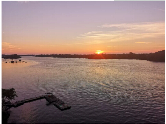 一路上繞來(lái)繞去,到達以后卻愣是沒(méi)找到入口,后面找到隔壁一家釣魚(yú)場(chǎng)的工作人員一問(wèn),才知道原來(lái)龍尾灣是早上開(kāi)船過(guò)去,下午就坐船回來(lái)了,我們那個(gè)時(shí)間去,連工作人員都已經(jīng)下班回家了。好吧,那我們就往回趕,希望能在太陽(yáng)下山之前找到一個(gè)沙灘再看一次落日。最后,沙灘沒(méi)找到,我們干脆停在了一座大橋邊上,在大橋上看完了我們在沙巴亞庇的最后一個(gè)落日。雖然不像沙灘邊那么絕美壯觀(guān),卻也是別有一番滋味。