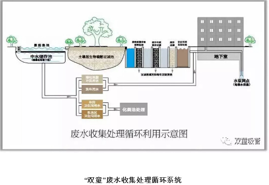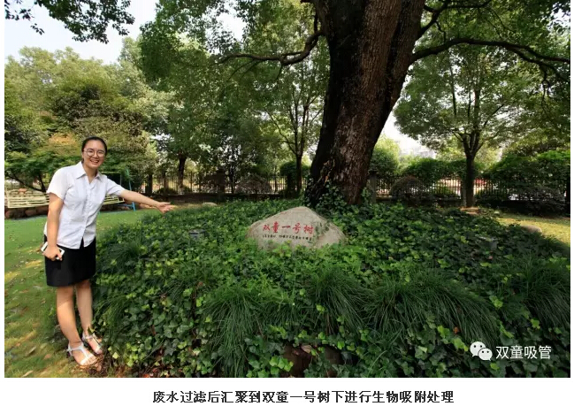 “雙童”景觀(guān)湖可不只是美化了環(huán)境,在碧綠的湖水下面還藏著(zhù)中水儲存池呢!通過(guò)廢水收集處理循環(huán)利用系統,“雙童”將企業(yè)所有的工業(yè)廢水、生活污水在過(guò)濾后匯聚到“雙童一號樹(shù)”下進(jìn)行生物吸附處理,再流入景觀(guān)池下面的中水池中。