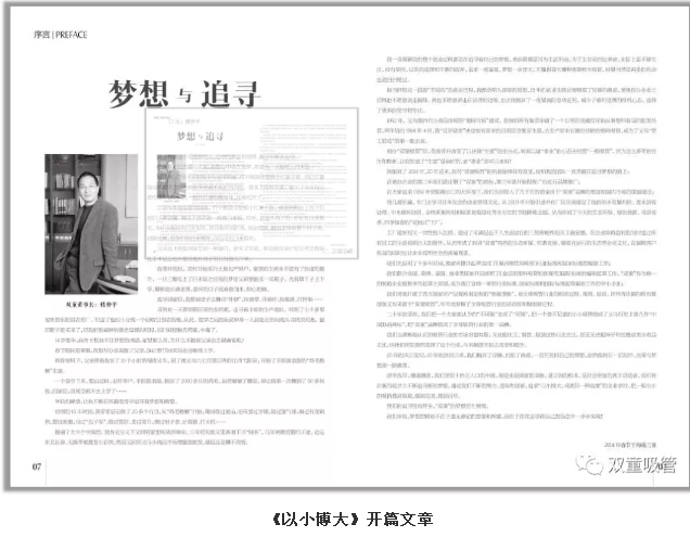 親愛(ài)的粉絲們,吸管妞今天要給大家推薦“雙童”企業(yè)文化叢書(shū)《以小博大》中的開(kāi)篇好文《夢(mèng)想與追尋》。本篇文章由“雙童”當家人樓仲平親筆撰寫(xiě),他用平實(shí)樸素的語(yǔ)言講述了他的人生經(jīng)歷和創(chuàng )業(yè)經(jīng)歷,講述了他對于夢(mèng)想和追尋話(huà)題所引發(fā)的思考和感悟, 希望能對大家有所幫助和啟迪!