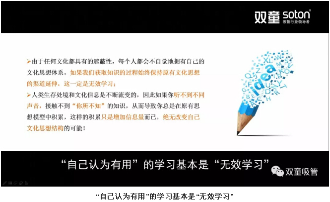 “正是由于任何文化都具有的遮蔽性,創(chuàng )業(yè)者都會(huì )不自覺(jué)地擁有自己的文化思想體系,并保持自己思維平衡而‘內部自洽’。如果我們獲取知識的過(guò)程始終保持原有文化思想的渠道延伸,這一定是無(wú)效學(xué)習?,F代知識的構架一定是體系化,而非單一通道。如果你聽(tīng)不到不同聲音,接觸不到‘你所不知’的知識,久而久之習慣于從固有角度來(lái)觀(guān)察、思考、學(xué)習和接受事物。從而導致你總是在原有思想模型中積累,這樣的積累只是增加信息量而已,絕無(wú)改變自己文化思想結構的可能!”