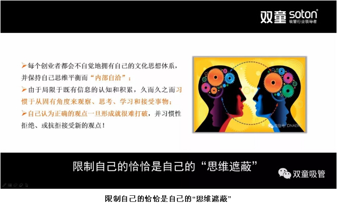 “雙童”在創(chuàng )辦后逐漸聘任部分原國營(yíng)企業(yè)的管理層,這些人客觀(guān)上在企業(yè)發(fā)展中做出了巨大貢獻。但由于這部分管理層年齡偏大、趨于守成,在固有的思維遮蔽下,他們依托于習慣思維,完全憑感覺(jué)經(jīng)驗、延用老方法解決不斷產(chǎn)生的新問(wèn)題,不愿學(xué)習,創(chuàng )新意識低下,抵制變革,拒絕接受和應用新興事物,在一定程度上成為當時(shí)企業(yè)發(fā)展的阻力所在!