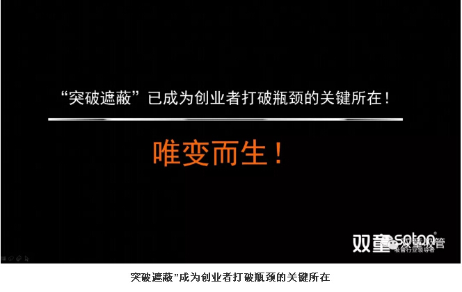 在當今巨變社會(huì )下,“變”成為這個(gè)時(shí)代沒(méi)有選擇的“選擇”!唯有“突破遮蔽”,創(chuàng )業(yè)者們才能打破自身瓶頸!親愛(ài)的粉絲們,你們明白了嗎?