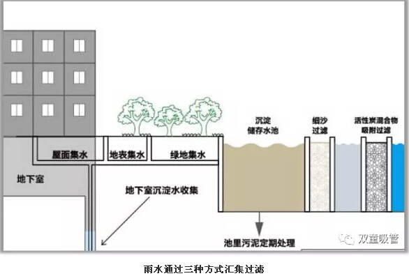 如此實(shí)用的系統是如何形成的呢?秘訣就是在屋頂、路面、綠化帶中做好雨水收集點(diǎn),用地下管道把它們連成一個(gè)整體,經(jīng)過(guò)科學(xué)過(guò)濾,匯集到一個(gè)占地700多平方米、總裝水容量近4000噸的雨水收集池。