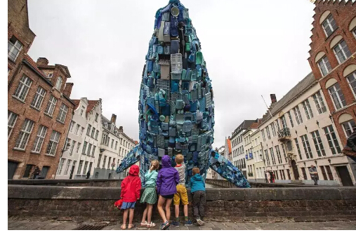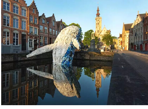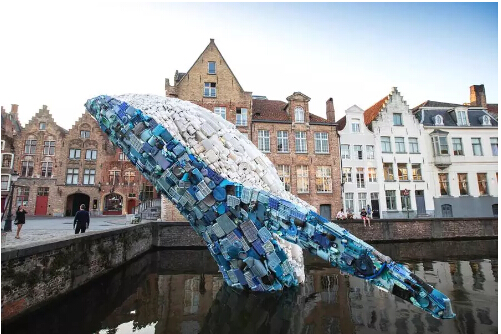 該作品以躍姿鯨魚(yú)的被安置在比利時(shí)城市的主要運河中供游客參觀(guān),這一令人印象深刻的裝置作品旨在讓人們關(guān)注海洋中數量巨大的塑料廢棄物等海洋垃圾壞境問(wèn)題。