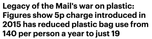 “根據數據顯示,自2015年推出對每個(gè)塑料袋征收5便士(約4.5毛)稅款法案后,英國的塑料袋使用量從人均每年140個(gè)降至19個(gè)!”
