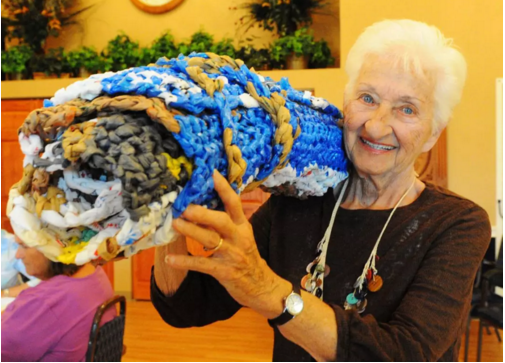 在美國奧馬哈,一群老奶奶把470年都降解不了的塑料袋,一點(diǎn)點(diǎn)清潔后織成“毛毯”……