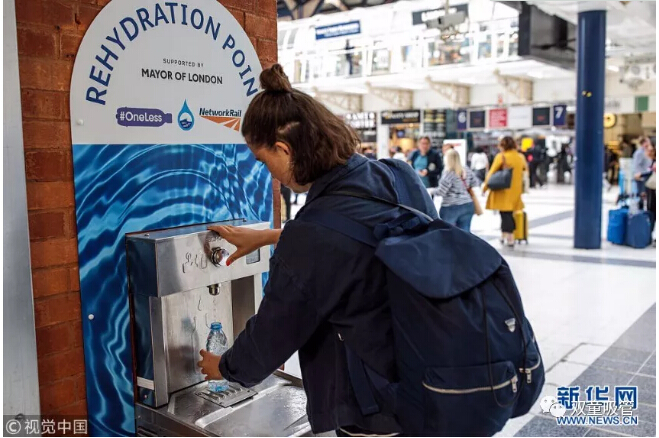 8月28日,英國倫敦禁塑又有了新舉措,民眾紛紛在公共飲水機旁飲水。