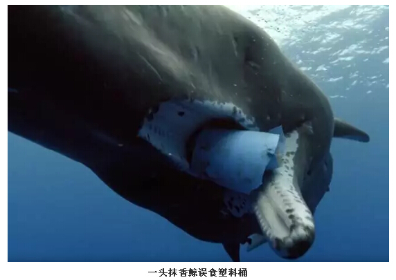 在一期中出現了這樣令人心碎的一幕。一頭抹香鯨把一個(gè)塑料桶誤認為是食物一點(diǎn)點(diǎn)吞進(jìn)了嘴里,而這很可能導致它被卡住無(wú)法進(jìn)食。