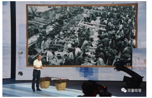 在節目現場(chǎng),“雙童”樓仲平也帶來(lái)了許多精彩的照片。其中,開(kāi)場(chǎng)照片便是義烏這座城市的對比照片。通過(guò)挑貨郎與義烏小商品城開(kāi)展全球電商的照片對比,樓仲平講述了義烏如何從貧瘠落后的小縣城發(fā)展為全球最大的小商品集散中心的故事……