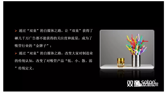 那么,“雙童”作為一家制造型中小企業(yè),為什么會(huì )吸引大量的社會(huì )和媒體關(guān)注呢?下面,吸管妞也將大會(huì )當天所做的主題分享《“一根吸管”的自媒體之路》和大家做詳細分享:
