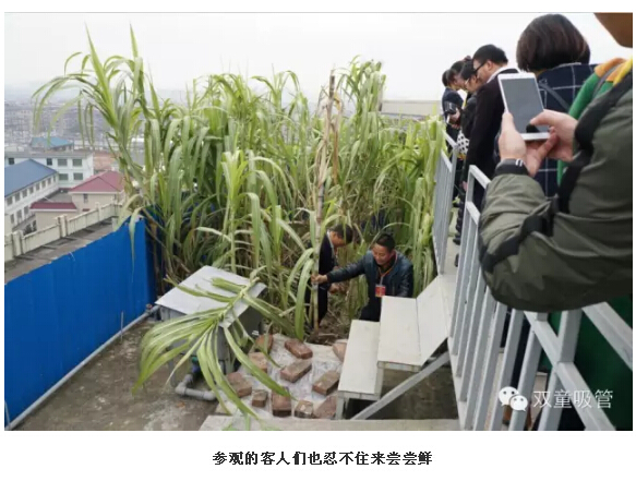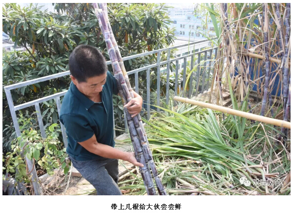 這不,“雙童”屋頂菜園里的甘蔗也迎來(lái)了豐收季,一排排粗壯的甘蔗,紫色的枝干和清悠悠的葉子整齊劃一的在風(fēng)中搖擺,誘人極了!