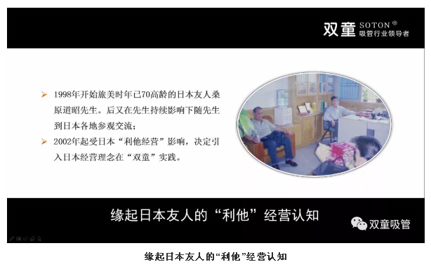 1998年,“雙童”樓仲平結識了一位旅美日本友人桑原道昭先生。桑原道昭先生在美國待了45年,會(huì )一點(diǎn)漢語(yǔ)。他會(huì )和樓仲平交流做生意的看法,并用日本人的視角和思想解讀節能環(huán)保、節約土地、員工關(guān)懷等方面的話(huà)題。