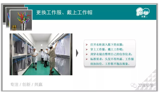 聽(tīng)到這里,很多新員工也理解了吸管衛生保障的重要性。接下來(lái),就讓我們跟著(zhù)毛講師的課程,再次重溫一下出入車(chē)間的防護措施吧: