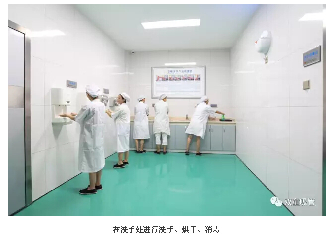 4、整理完衣物后,來(lái)到洗手消毒間,進(jìn)行洗手、烘干、消毒。