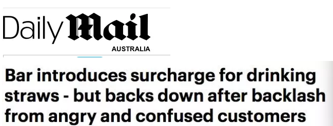 根據《每日郵報》報道,墨爾本一家酒吧積極響應禁塑令,對要求使用塑料吸管的客人收取50分澳元的費用,卻引起了客人的憤怒和不解……