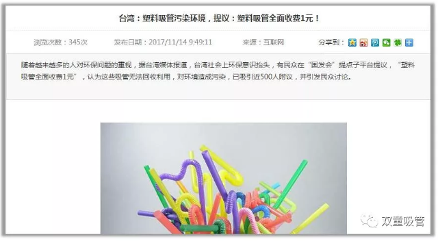 而臺灣媒體也報道,有民眾在“國發(fā)會(huì )”提點(diǎn)子平臺提議,“塑料吸管全面收費1元”,因為這些吸管無(wú)法回收利用,對環(huán)境造成污染,這一點(diǎn)子引發(fā)民眾熱烈討論……