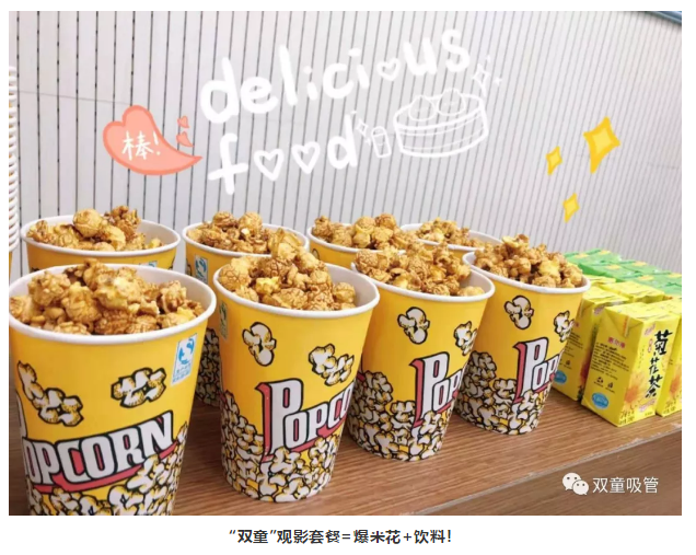 電影開(kāi)始之前,大家早早的就來(lái)排隊領(lǐng)取“雙童”觀(guān)影標配套餐:爆米花+飲料!還有小觀(guān)眾甚至自帶了放大版爆米花桶,對吸管妞說(shuō):“我今天的愿望就是把這桶裝滿(mǎn)!我和小伙伴就要這一桶!”吸管妞當然要滿(mǎn)足他們的愿望啦,不夠還可以續“桶”哦