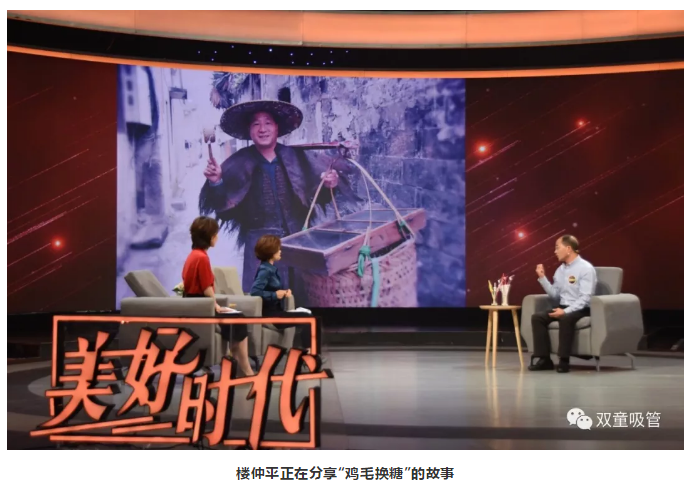在節目錄制過(guò)程中,主持人趙丹軍好奇地問(wèn)了“雙童”樓仲平一個(gè)問(wèn)題:“你是幾歲開(kāi)始挑貨郎擔的?”當得知樓仲平14歲就開(kāi)始“雞毛換糖”,并且每天要挑大約300多斤的雞毛時(shí),大家都驚訝極了!