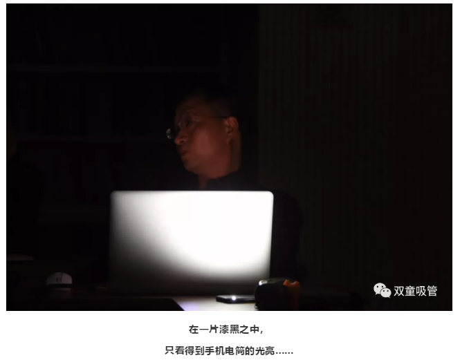 原來(lái),是在“雙童”學(xué)習會(huì )現場(chǎng),突然碰到了停電的情況。