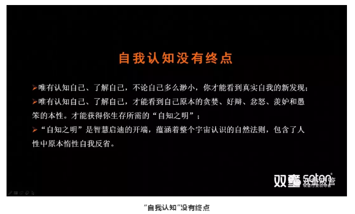 原來(lái),這是“雙童”第256期—259期行政學(xué)習會(huì )?!半p童”樓仲平連續四天圍繞“人性的基礎認知”、“人性的十三個(gè)特征”、“理性與感性思維”三大板塊進(jìn)行分享,引導員工們認知“人性”和“哲科思維”。
