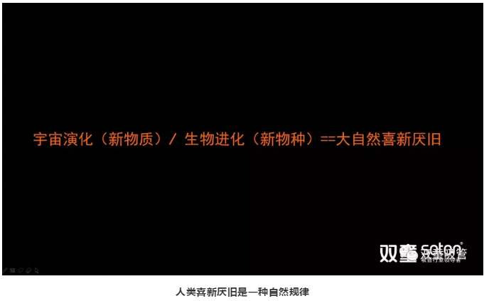 再則是物種屬性推動(dòng)了人類(lèi)從“獸”向“人”進(jìn)化,喜新厭舊,喜歡放棄“舊”的、追求“新”的,“創(chuàng )新”滿(mǎn)足并維持了人類(lèi)喜新厭舊的應變反饋,實(shí)際上是人類(lèi)進(jìn)化為智能生物的一種自然形態(tài)。