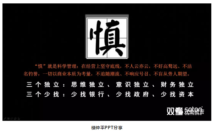 作為企業(yè)來(lái)說(shuō),如果你能做到這兩個(gè)“少找”,你的企業(yè)一定能活得更久。因為你會(huì )更客觀(guān)、更市場(chǎng)化、更經(jīng)得起外部宏觀(guān)的影響?!半p童”就是如此,沒(méi)有太多的負債,甚至不負債。這樣一來(lái),無(wú)論外面產(chǎn)生什么樣的環(huán)境,相對來(lái)講做好自己。企業(yè)的使命不是做多大,如果一生當中能把某一件極小的事情做得足夠好的時(shí)候照樣偉大,而非要做成百億企業(yè)。
