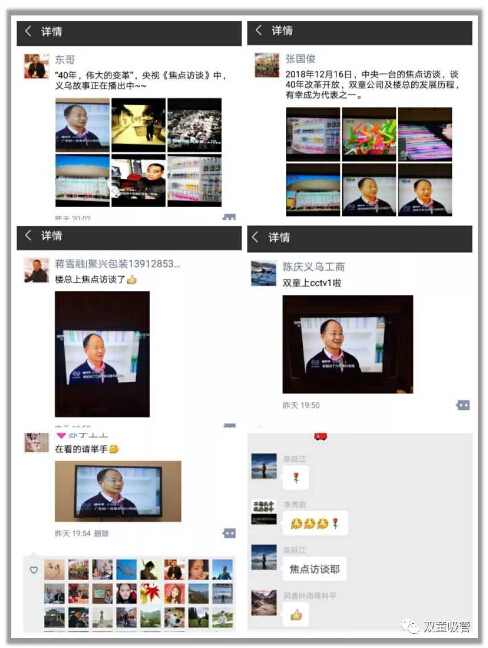 12月16日晚,中央電視臺《焦點(diǎn)訪(fǎng)談》節目播出了改革開(kāi)放40周年專(zhuān)題節目,聚焦義烏“雞毛換糖”精神,全面展示義烏的發(fā)展和文化。作為末代貨郎的樓仲平也再次登上《焦點(diǎn)訪(fǎng)談》節目,在本期節目中分享了改革開(kāi)放40周年自己的創(chuàng )業(yè)歷程!