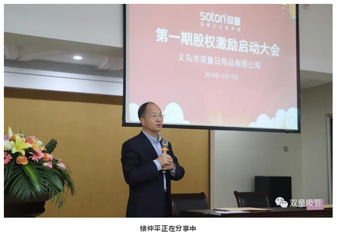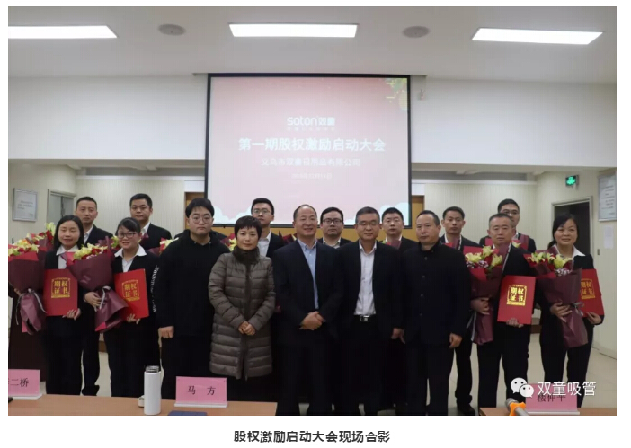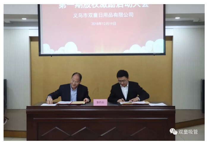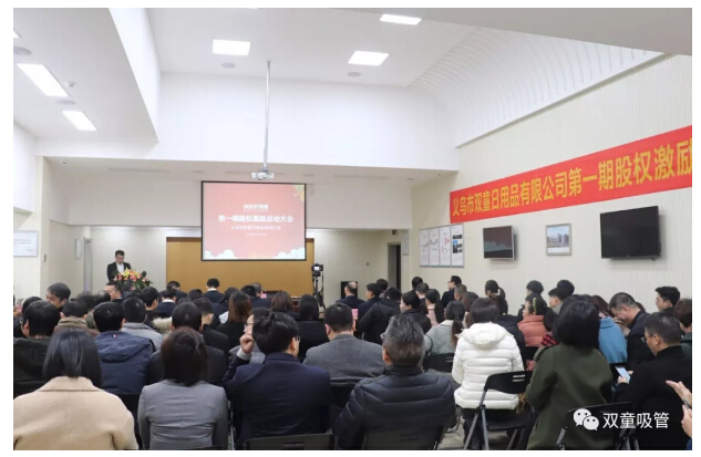 2018年12月19日,對“雙童”來(lái)說(shuō),是代表著(zhù)夢(mèng)想、激情、奮斗的一天!在這一天,雙童吸管第一期股權激勵啟動(dòng)大會(huì )在“雙童”九樓閣隆重舉行!“雙童”首批12位核心員工將成為“雙童”的經(jīng)營(yíng)伙伴,一起互相陪伴,走向未來(lái)!
