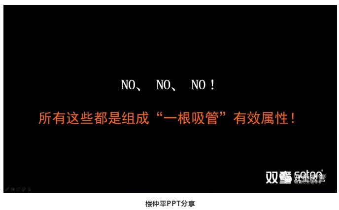 接下來(lái),樓仲平通過(guò)“雙童”VCR和照片案例再次驗證:“雙童”做節能降耗和高品質(zhì)廠(chǎng)房并不是“不務(wù)正業(yè)”,而是脫離產(chǎn)品本身,站在一個(gè)更高的高度用更大的維度去思考產(chǎn)品,所有的這些都是組成“一根吸管”附加屬性的疊加,從而讓產(chǎn)品有了思維,有了廣延的屬性,使其成為了一個(gè)真正完整的產(chǎn)品!