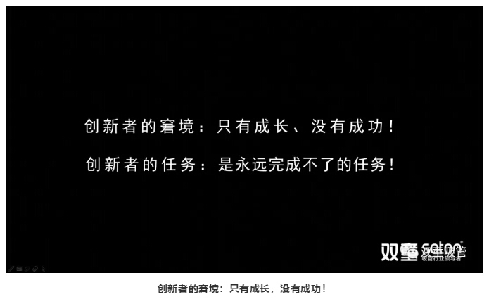 所以,創(chuàng )新是創(chuàng )業(yè)活動(dòng)的“應變反饋”,是“墮變過(guò)程”的“反向調整”。創(chuàng )新者的任務(wù)是永遠完成不了的任務(wù),只要創(chuàng )業(yè)持續,創(chuàng )新就需要“無(wú)限延展”!創(chuàng )新者的窘境在于只有成長(cháng),沒(méi)有成功!
