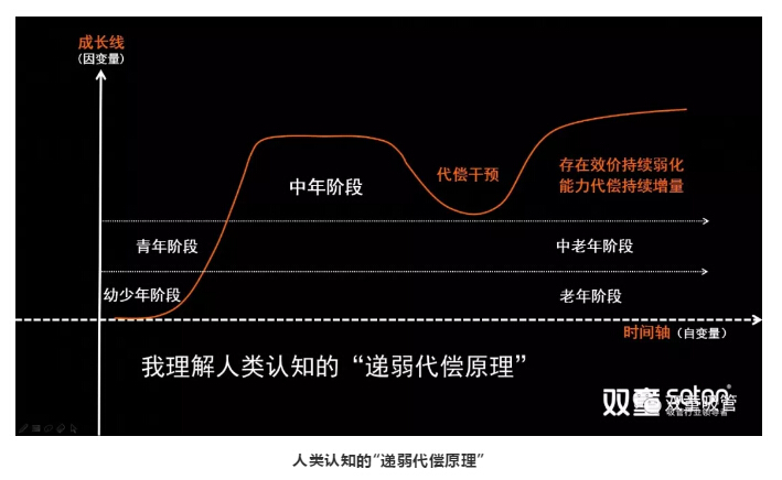 在這個(gè)過(guò)程中,如果人類(lèi)想要改變這一自然的“墮變規律”,就必然需要通過(guò)“代償干預”,對自身進(jìn)行不斷地調整和干預,從而讓認知能力從“下墮”走向“上揚”,讓能力代償持續增量!