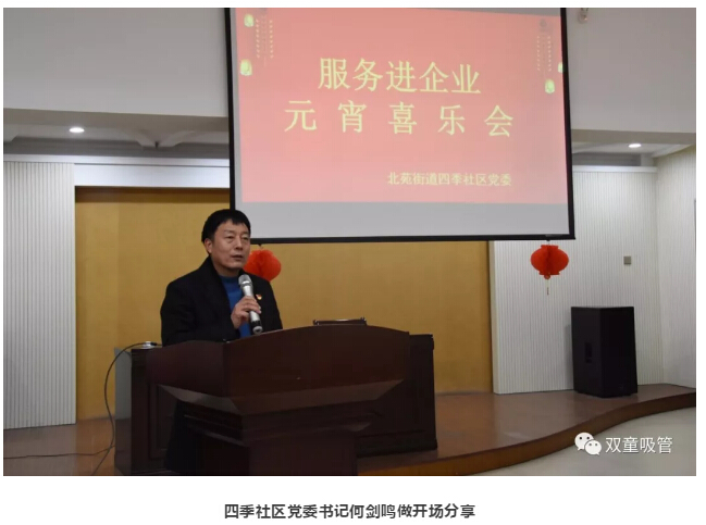 2月18日晚,“雙童”聯(lián)合北苑街道四季社區黨委,發(fā)揮"雙童同心圓"的黨建引領(lǐng)作用,共同開(kāi)展了元宵喜樂(lè )會(huì )活動(dòng)。此次活動(dòng)除了“雙童”員工代表之外,還邀請了北苑兩新企業(yè)的支部書(shū)記、職工代表,大家聚在一起共度溫馨的元宵佳節!