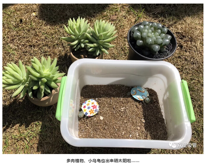 “雙童”寶貝們也按耐不住了,來(lái)到草坪上嬉戲玩耍!不過(guò),寶貝們可得小心哦,因為草坪上還曬著(zhù)萌萌的多肉植物,可愛(ài)的小烏龜呢!