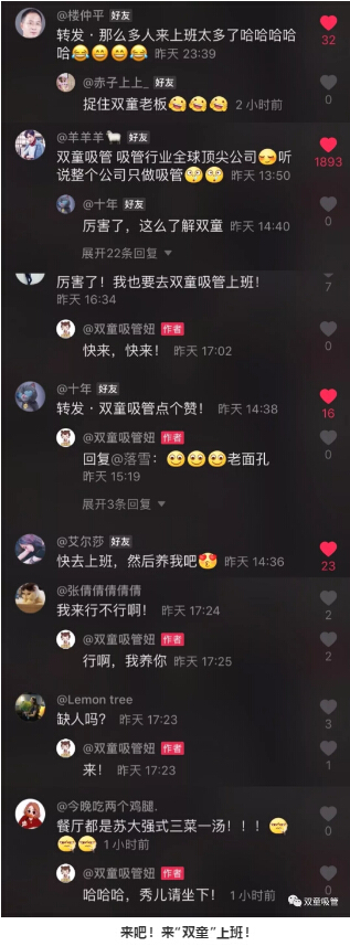 還收到抖友們要來(lái)雙童上班的留言轟炸!