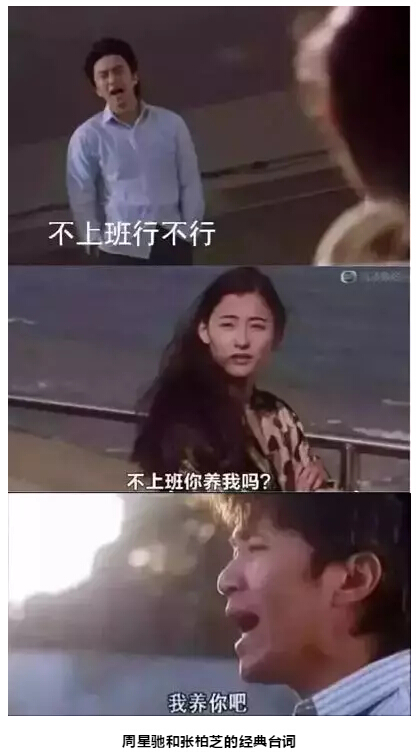 不上班行不行???”“不上班你養我嗎?”“我養你??!這不是周星馳和張柏芝在《喜劇之王》的經(jīng)典臺詞嘛!