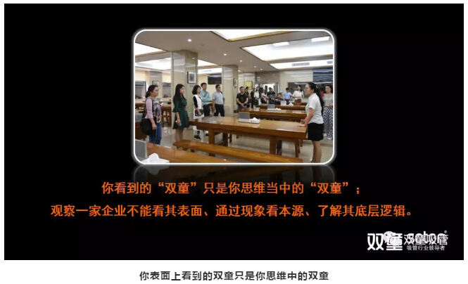 樓仲平以“雙童”為例:你所看到的“雙童”一切都是假象,如果你學(xué)了只有害處?!半p童”的餐桌是20000元一張,你可能會(huì )覺(jué)得一張桌子20000元很貴,但是你一定要洞透‘雙童’為什么會(huì )這么做,企業(yè)這樣做的底層邏輯在哪里,唯有你探究到它的底層邏輯,才是亙古不變。
