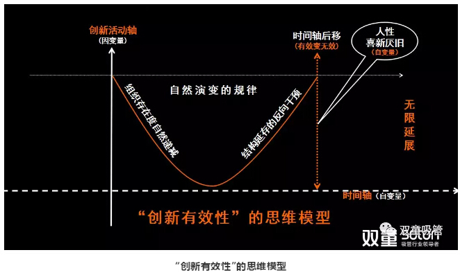 在“創(chuàng )新思維模型”中:組織作為萬(wàn)物當中的組成部分,在自然演變的過(guò)程當中組織存在“自然遞減”。為了保證組織持續存在,就需要不斷地調整和干預,從而延緩組織存在度發(fā)生“自然遞減”的墮變現象,保持組織活力!